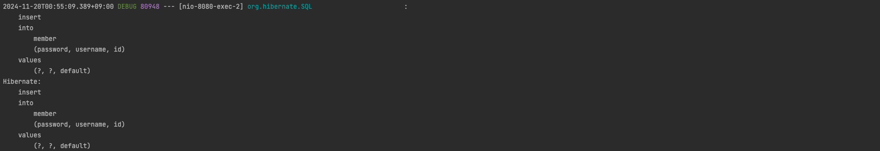 String createName = testService.joinMember(signUpRequest.getUsername(), signUpRequest.getPassword());