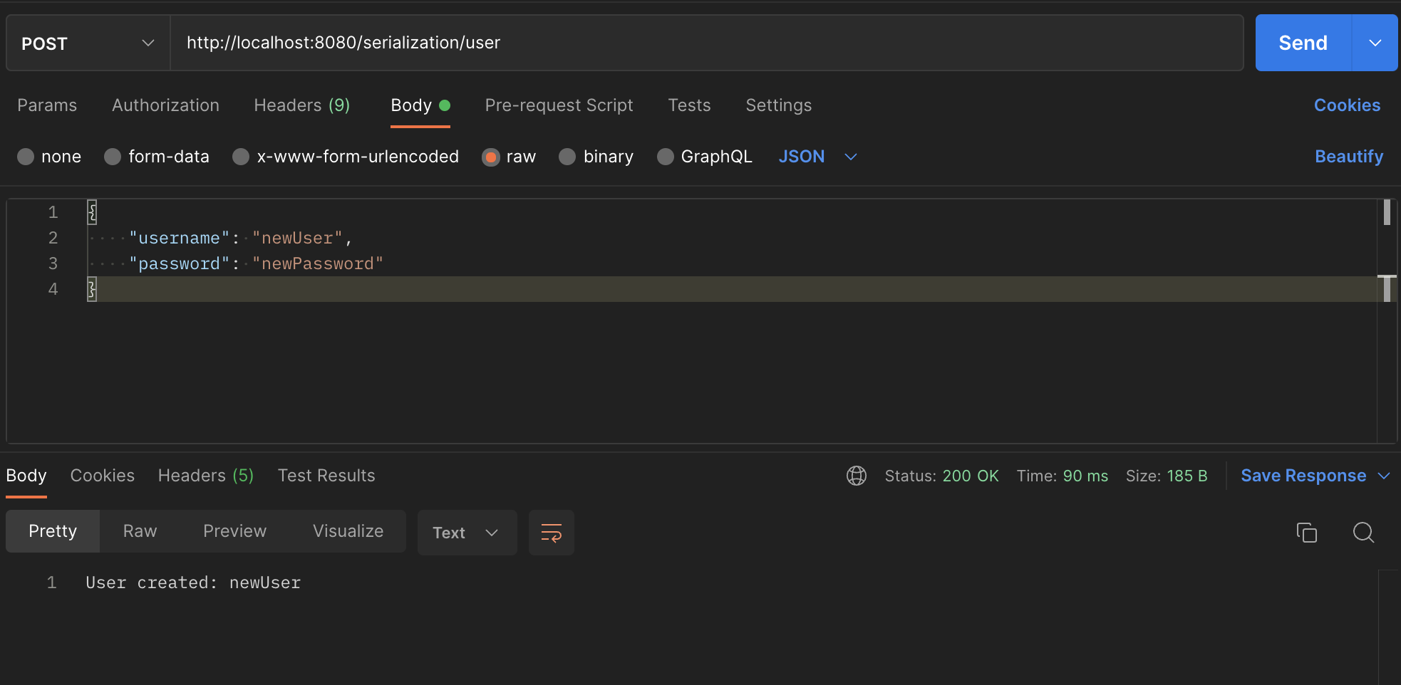 String json = "{\"username\":\"testUser\",\"password\":\"password123\"}";