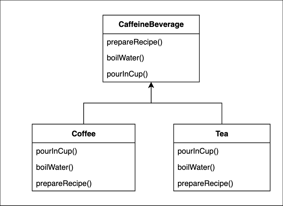 - 일반화를 최대한 적용. ⇒ CaffeinBeverage 클래스에 반영