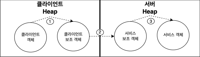 - 클라이언트 보조 객체의 메소드를 호출 => 서비스 보조 객체 호출(1)