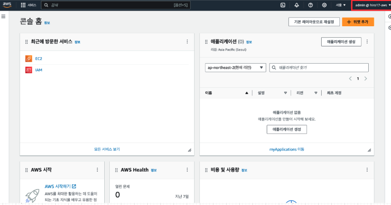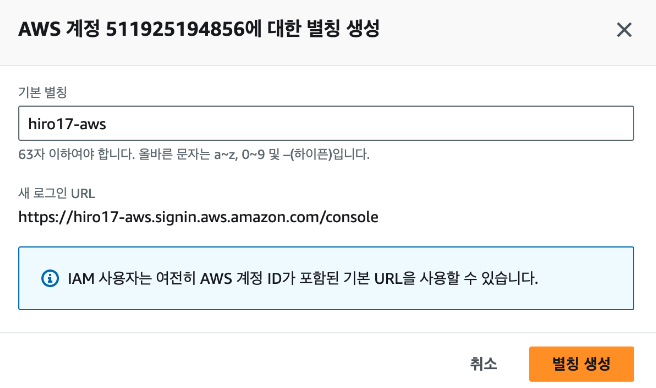 1. 이제부터 https://hiro17-aws.signin.aws.amazon.com/console으로 로그인 가능