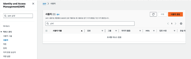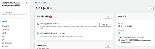 - IAM(Identity and Access Management)를 통해 생성한 유저