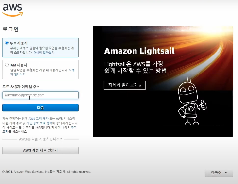 루트 사용자 또는 IAM 사용자로 콘솔에 로그인 가능합니다!!