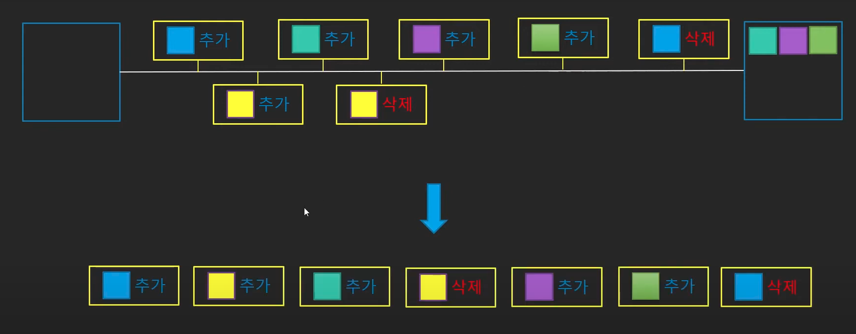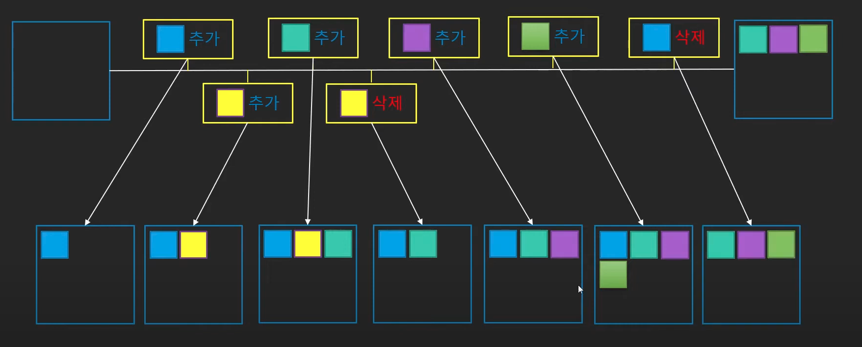 - 상태를 저장하는 것이 아닌 Action을 저장.