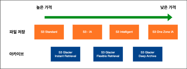 - S3 다양한 스토리지 클래스 제공