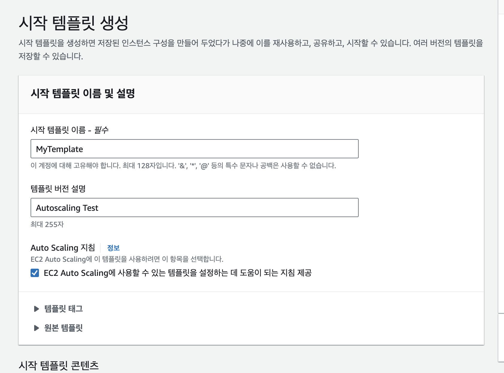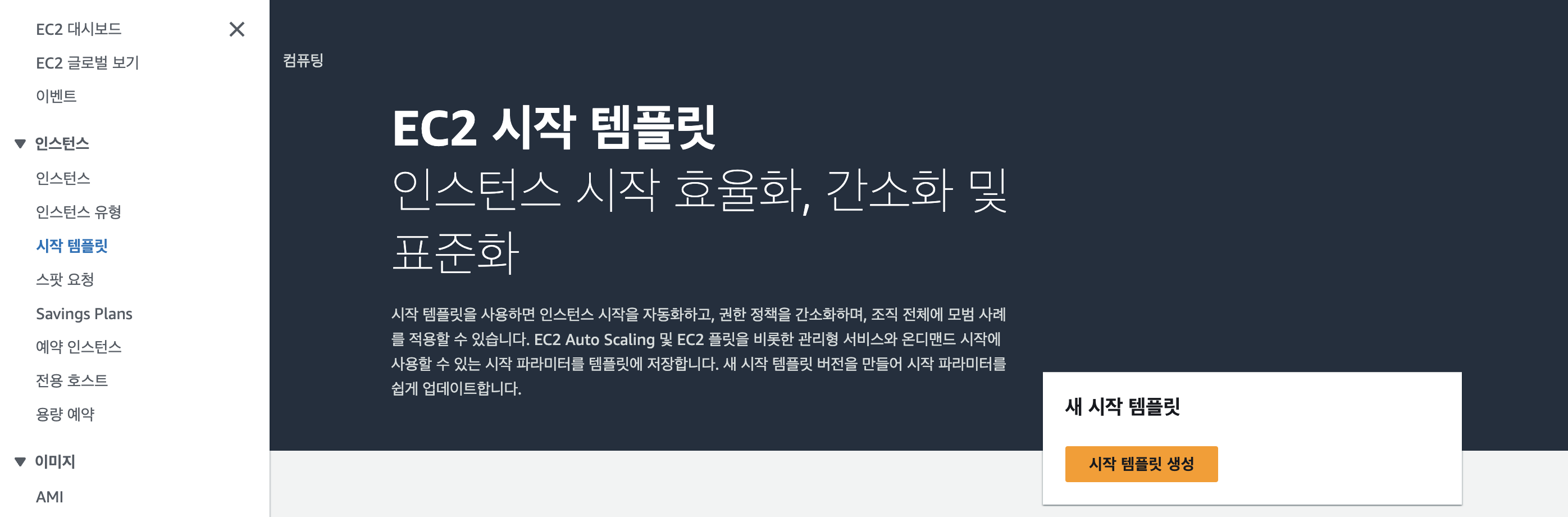EC2 대시보드 -> 시작 템플릿체크 박스 선택AMI 선택