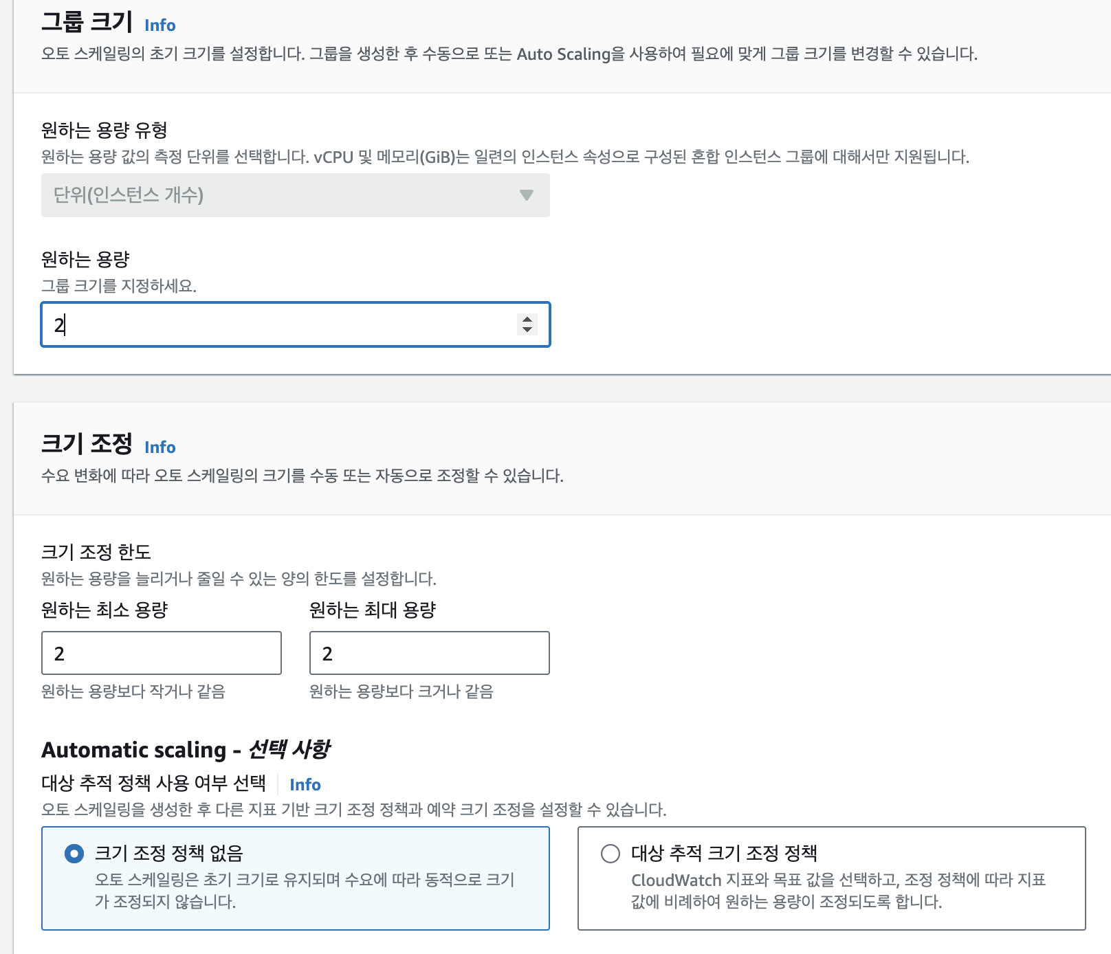 그룹의 최소 인스턴스 숫자와 최대 인스턴스 숫자 설정 가능