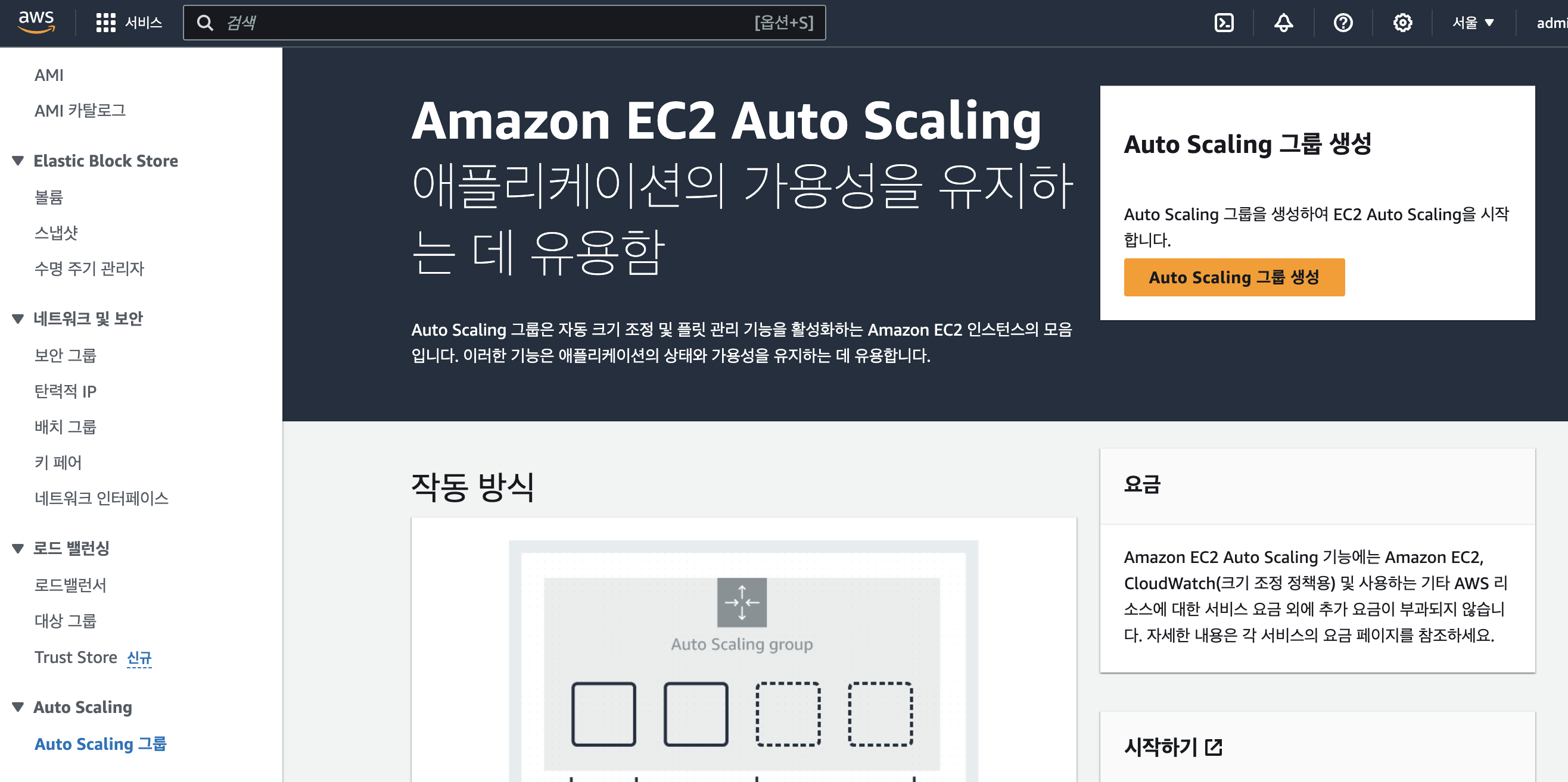 1. Auto Scaling 선택 후 Auto Scaling 그룹 생성