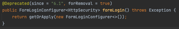HttpSecurity 클래스에서는 formLogin() 메소드 호출시 FormLoginConfigurer 클래스를 생성 후 getOrApply 메소드의 인자 값으로 넘겨줍니다.