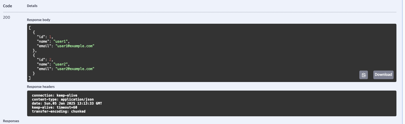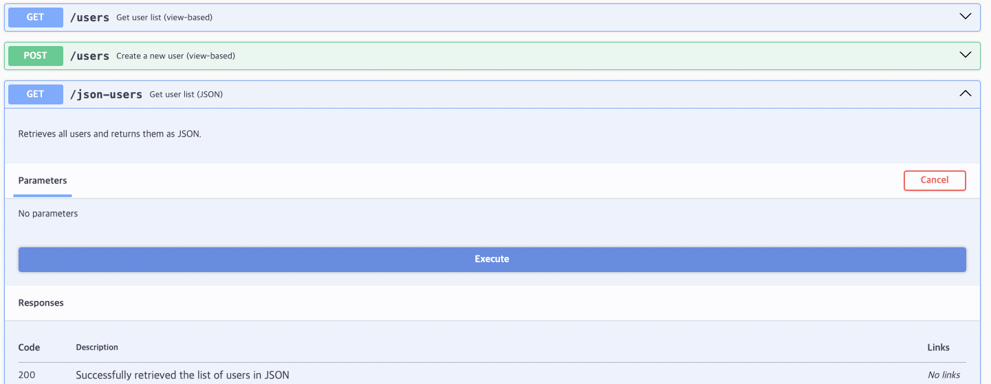 /json-users를 클릭 후 Execute를 하면