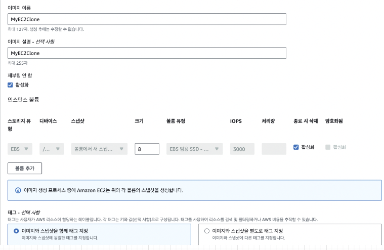 - 스냅샷을 기반으로 AMI 구성가능