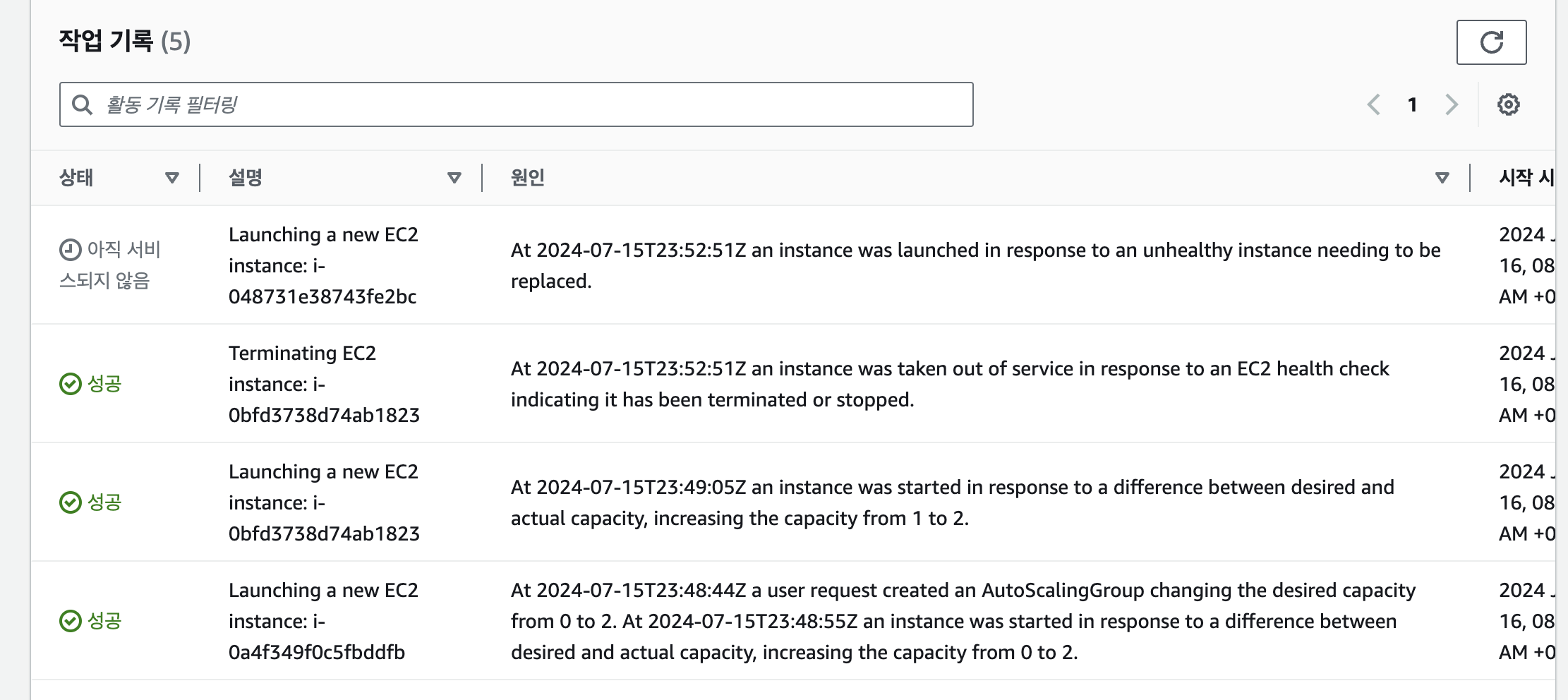- 시작 구성에 맞는 EC2를 auto Scaling 클러스터에 띄워줌.