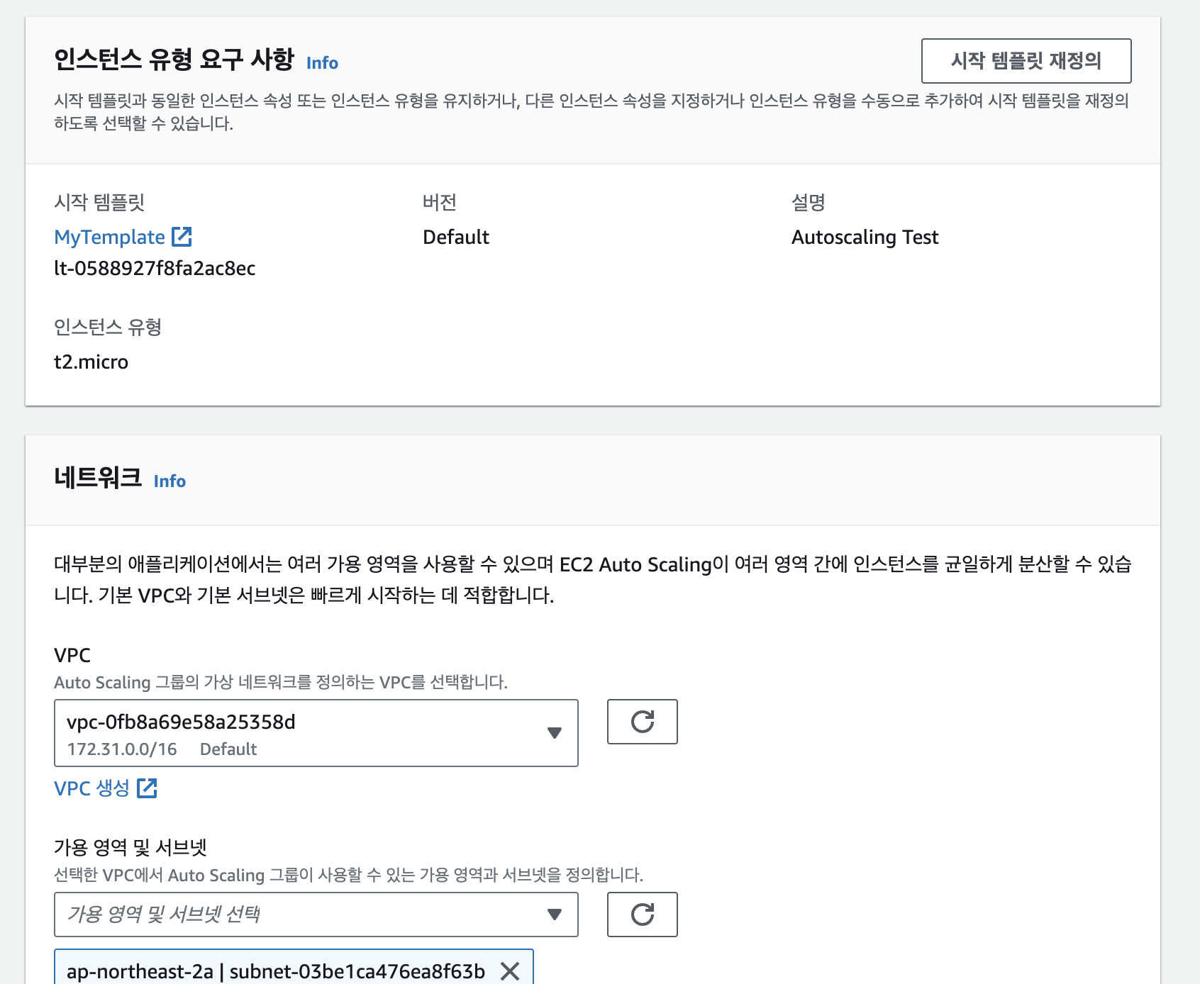 - 시작 구성(launch configurations) / 시작 템플릿(launch template): 무엇을 실행시킬 것인가
