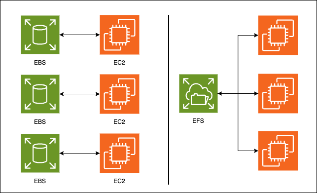 - EFS One Zone: 하나의 가용영역에 보관 → 저장된 가용영역의 상황에 영향을 받을 수 있음.